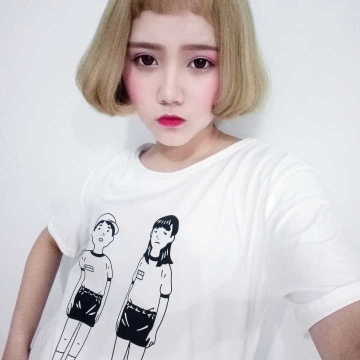 2016夏裝韓版寬松原宿BF風(fēng)兩個人短袖T恤打底衫 /