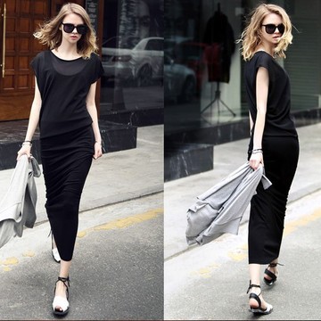 歐美風(fēng)新款假兩件包臀修身連衣長裙 /