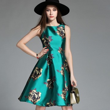 時(shí)尚印花收腰歐美外貿(mào)連衣裙 /