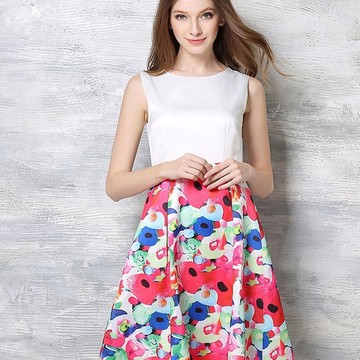 時(shí)尚高端外貿(mào)拼接印花修身連衣裙 /