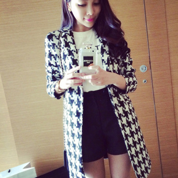 2016春款 歐美千鳥(niǎo)格長(zhǎng)款西裝氣質(zhì)外套百搭西服爆款薄女人味P120 /