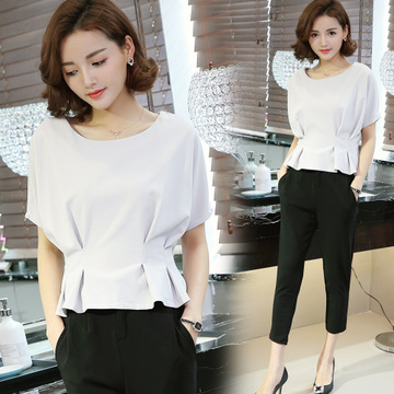 2016夏裝韓版簡(jiǎn)約圓領(lǐng)短袖雪紡衫女顯瘦小衫女上衣 /
