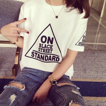 春夏新款韓范時尚三角形字母印花短袖t恤上衣 /