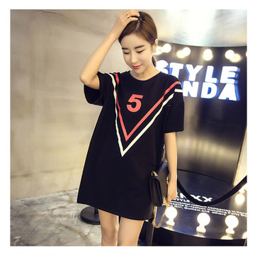 韓版字母印花中長款圓領(lǐng)短袖寬松t恤衫女潮 /