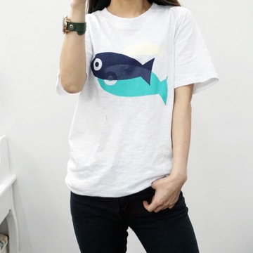 2016夏季新款韓版學(xué)院風(fēng)小魚印花短袖T恤竹節(jié)棉T恤 女 /