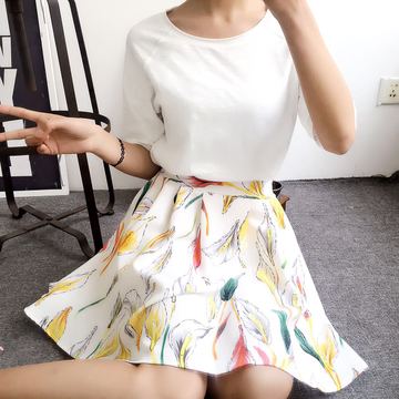新款印花馬蹄蓮大擺百褶半身裙女 春夏百搭碎花傘裙 清新甜美中裙 /