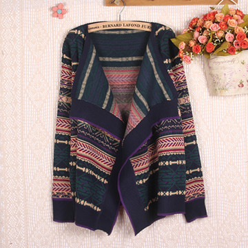2014秋季新款女裝 復(fù)古民族風(fēng)披肩不規(guī)剛針織開(kāi)衫寬松花紋毛衣 /
