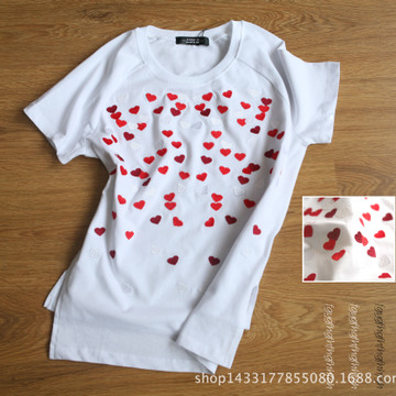 16年獨(dú)家全身刺繡小紅心滿滿的全是愛(ài)YD刺繡桃心純棉短袖T恤女 /