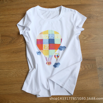 16獨(dú)家春款女裝新品浪漫熱氣球印花簡(jiǎn)約圓領(lǐng)短袖寬松T恤上衣春 /