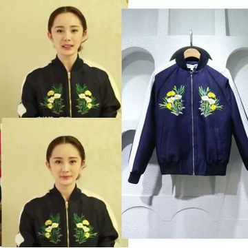 2016春季新款 楊冪同款棒球服外套花朵刺繡短款夾克衫休閑外套女 /