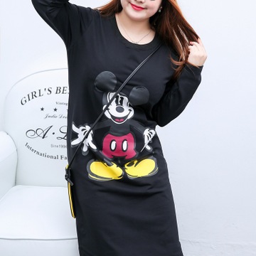 韓國春裝新款9分袖卡通連衣裙加大加肥胖mm直筒開叉顯瘦長裙969 /