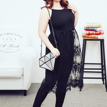 2016大碼女裝春夏打底裙 胖mm200斤胖妹蕾絲拼接吊帶打底裙877 /
