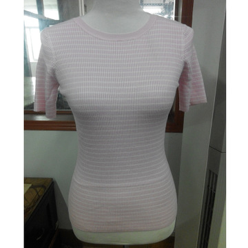 2015秋季新款女式針織衫 韓版圓領(lǐng)條紋間色短袖針織衫 廠家直銷 /
