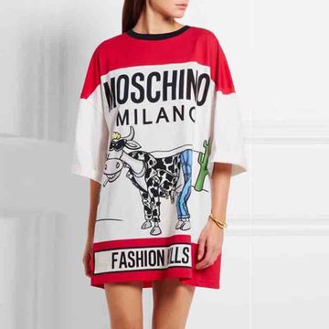 16夏新款奶牛走秀中長(zhǎng)款T恤字母寬松短袖連衣裙 /
