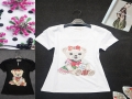 2016手工釘珠亮片T恤 彩色小熊印花圓領(lǐng)彈力 歐洲站時(shí)尚短袖上衣 /