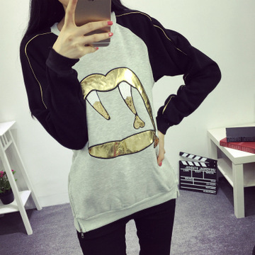 韓版2015秋裝新款女裝刺繡印花寬松顯瘦長(zhǎng)袖套頭衛(wèi)衣 /