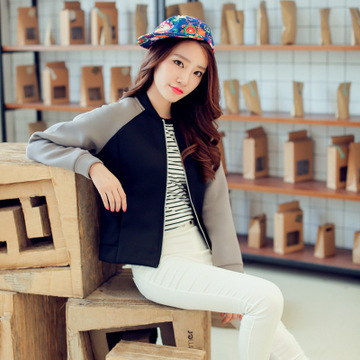 洋氣短款 空氣棉撞色拼接棒球服女春短外套女 2015秋裝新款 /