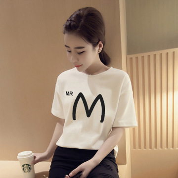 2016夏季新品短袖T恤字母印花圓領(lǐng)上衣打底衫女 /
