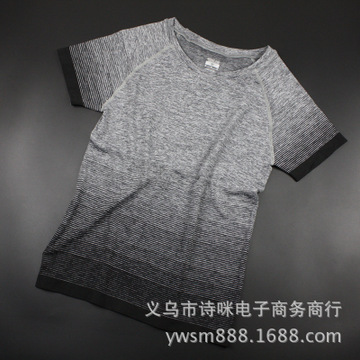 2016新款女士瑜伽T恤 漸變速干運(yùn)動(dòng)健身女短袖 跑步訓(xùn)練跳操上衣 /