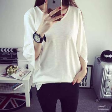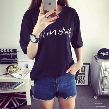 韓國東大門夏季新款 百搭時尚簡約字母純棉寬松圓領(lǐng)短袖T恤女 /