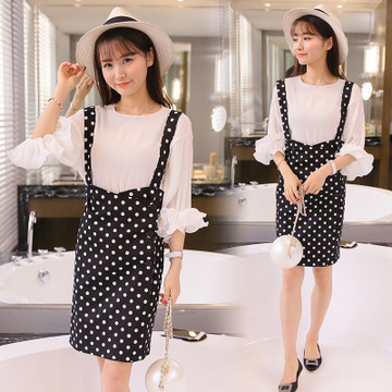 名雅軒女裝夏新款韓版時(shí)尚修身顯瘦兩件套背帶波點(diǎn)套裝裙女 /