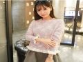 2015女式小清新秋季打底衫圓領(lǐng)長(zhǎng)袖拼色直筒木耳邊套頭針織衫 /