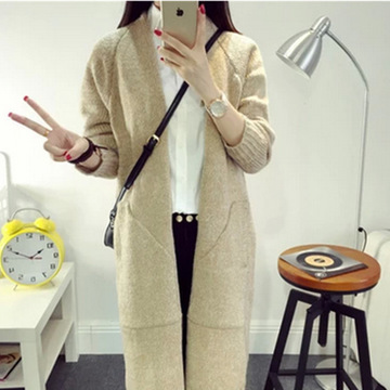 2015時(shí)尚潮流韓版女寺開(kāi)衫V領(lǐng)長(zhǎng)袖純色寬松長(zhǎng)款針織衫外套批發(fā) /