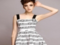 婧琪女裝外貿(mào)女裝現(xiàn)貨爆款亞馬遜熱賣新款氣質(zhì)音符印花白色連衣長裙 /