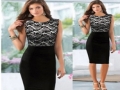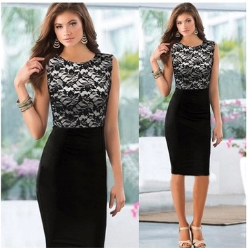 米尼婭女裝2016新款歐美風(fēng)外貿(mào)熱賣蕾絲拼接修身鉛筆裙 連衣裙 /
