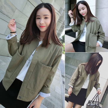 阿里巴巴批發(fā)網(wǎng)2016春季新品韓版百搭蝙蝠袖寬松大口袋軍綠色外套 /