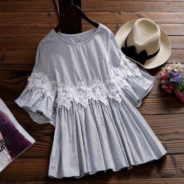 2016夏季新款韓版森女大碼女裝甜美荷葉袖立體花邊打底上衣短裙潮 /
