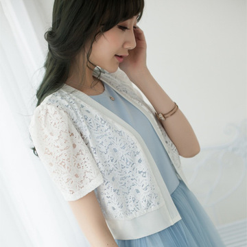 2016夏季女蕾絲衫韓版小披肩外套百搭坎肩短款外搭開(kāi)衫防曬衣 女 /