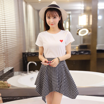 【實拍】2016夏裝韓版套裙圓領貼布印花短袖連衣裙兩件套套裝 /
