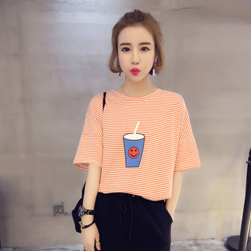 學(xué)院 小甜心 百搭 細(xì)條紋短袖T恤女士 時尚款 純棉手感很好 /