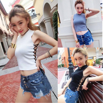 2016女裝新款街頭復(fù)古小性感側(cè)系帶無(wú)袖背心顯瘦百搭 /