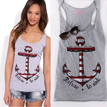 外貿(mào)女裝歐美夏季新款船錨印花大碼無袖t恤 /