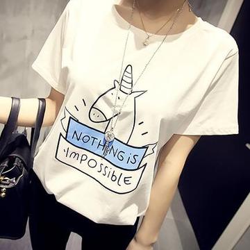 最新款夏裝韓版女裝寬松大碼百搭卡通小馬印花純棉短袖T恤女裝 /