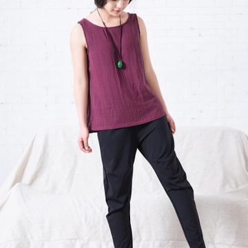 森繪夏新款無袖棉麻衫吊帶女夏外穿打底衫寬松百搭短款棉背心 /