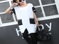 純棉大碼亮片口袋開叉中長(zhǎng)款裙打底衫短袖女t恤 /