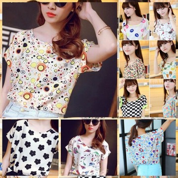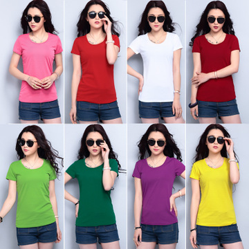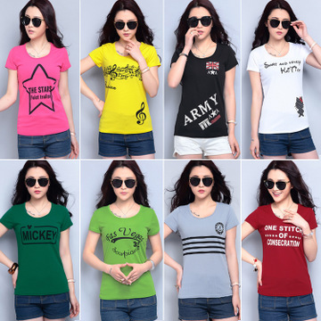 韓版純棉短袖女式T恤修身套頭印花彩色T恤女 /