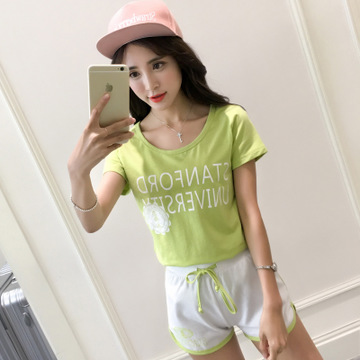 實拍2016夏季新款顯瘦短袖字母印花休閑時尚短褲運動套裝女 /