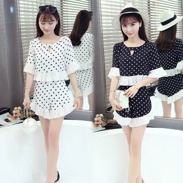 實拍夏裝新款短袖上衣時尚小香風氣質名媛短褲女兩件套潮 /