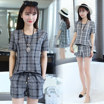 實拍 春夏新款女裝格子上衣+短褲名媛小香風修身休閑時尚套 /