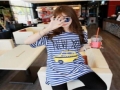 夏季孕婦裝時(shí)尚T恤俏皮可愛(ài)條紋小汽車(chē)印花中袖連衣裙休閑 /
