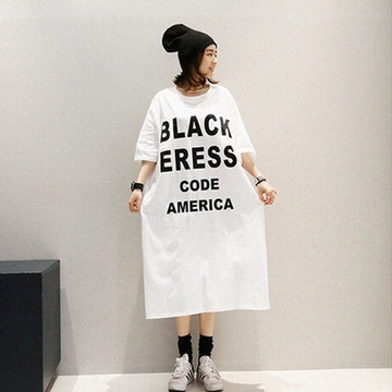 2016春夏新款 韓版字母寬松大碼七分袖連衣裙 /