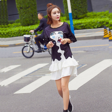實(shí)拍2016夏裝新款連衣裙女學(xué)生寬松顯瘦中長款夏天荷葉邊裙 /