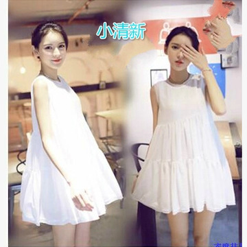 2016夏新款雪紡無袖背心孕婦裙白色娃娃裝A字寬松時尚清新連衣裙 /