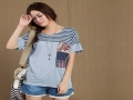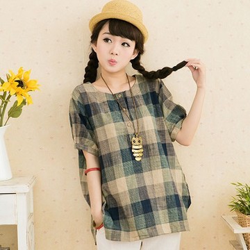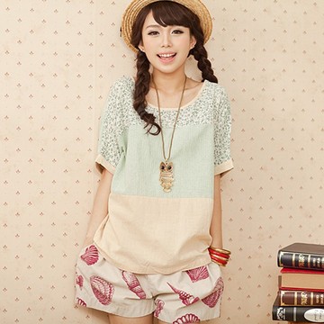 原創(chuàng)森女寬松蝙蝠衫 大碼全棉t恤 拼接上衣 /