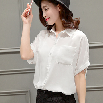 襯衫女短袖2016夏季新款韓范白色休閑雪紡衫寬松襯衣領(lǐng)短袖上衣女 /