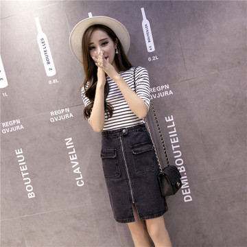 實(shí)拍 2016夏季韓版高腰修身顯瘦牛仔半身裙包裙女 /